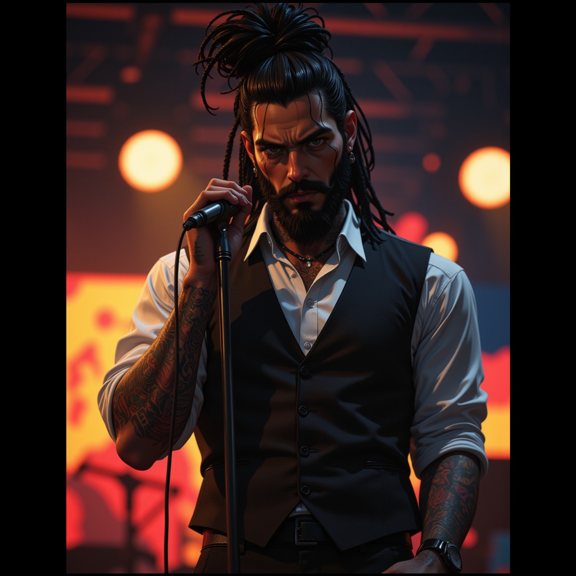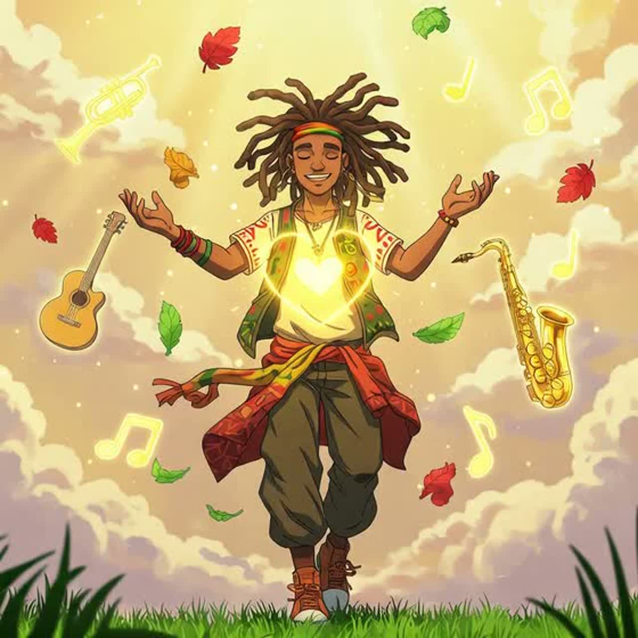 A work of art, a mix of energetic reggae and existential melancholy, in a work that emerges from the shadows to bring light to the world, the singer with a male toasting vocals creating a reggae atmosphere that envelops the song in its verses, the explosive choruses with the male voice emerge loudly giving a reggae atmosphere with a toasting voice, the piece has a dynamic mix of highs and lows with a perfectly tuned cinematic studio quality