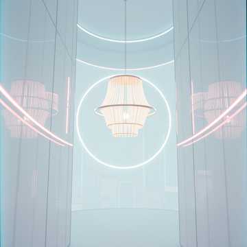 Glassy ambient-electronica bed with airy pads, glittering arps, and deep sub swells; slow build from sparse pulses into wide, shimmering harmonies, Wordless female vocals as distant choirs on the hook, subtle granular textures, and soft, tectonic impacts marking dimensional shifts, Everything floats in lush reverb, drifting through tempo-flexed patterns like bending planes of light