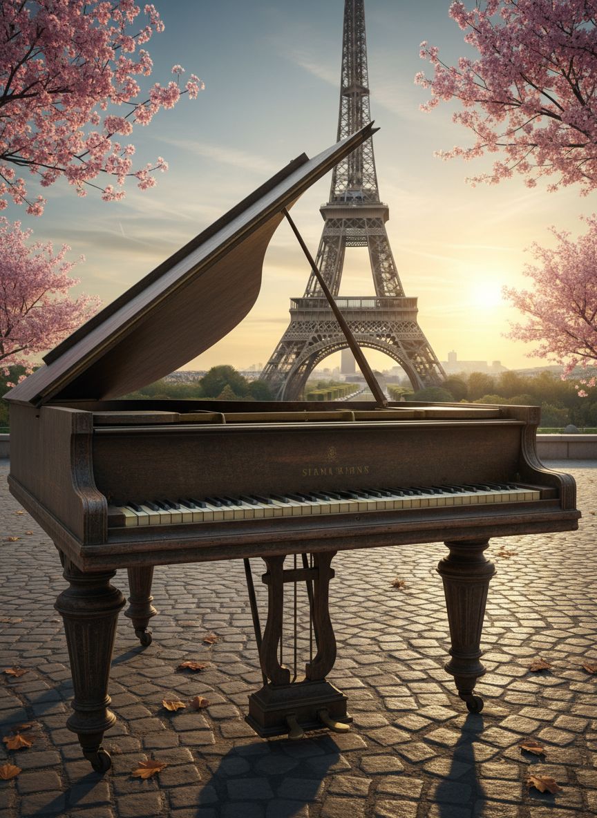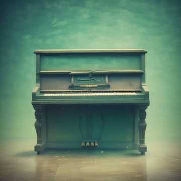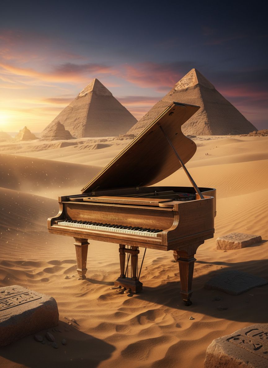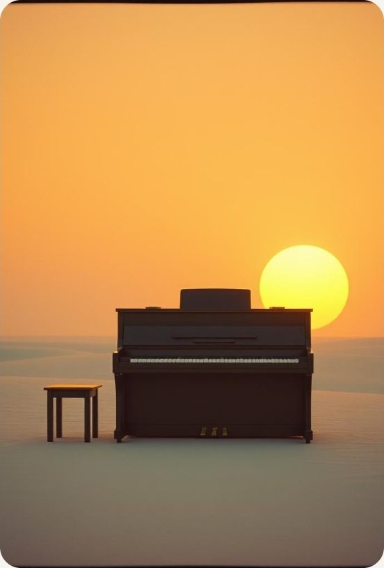 #HookImage: vintage piano on a plain, mystical and serene, realistic style, high detail
