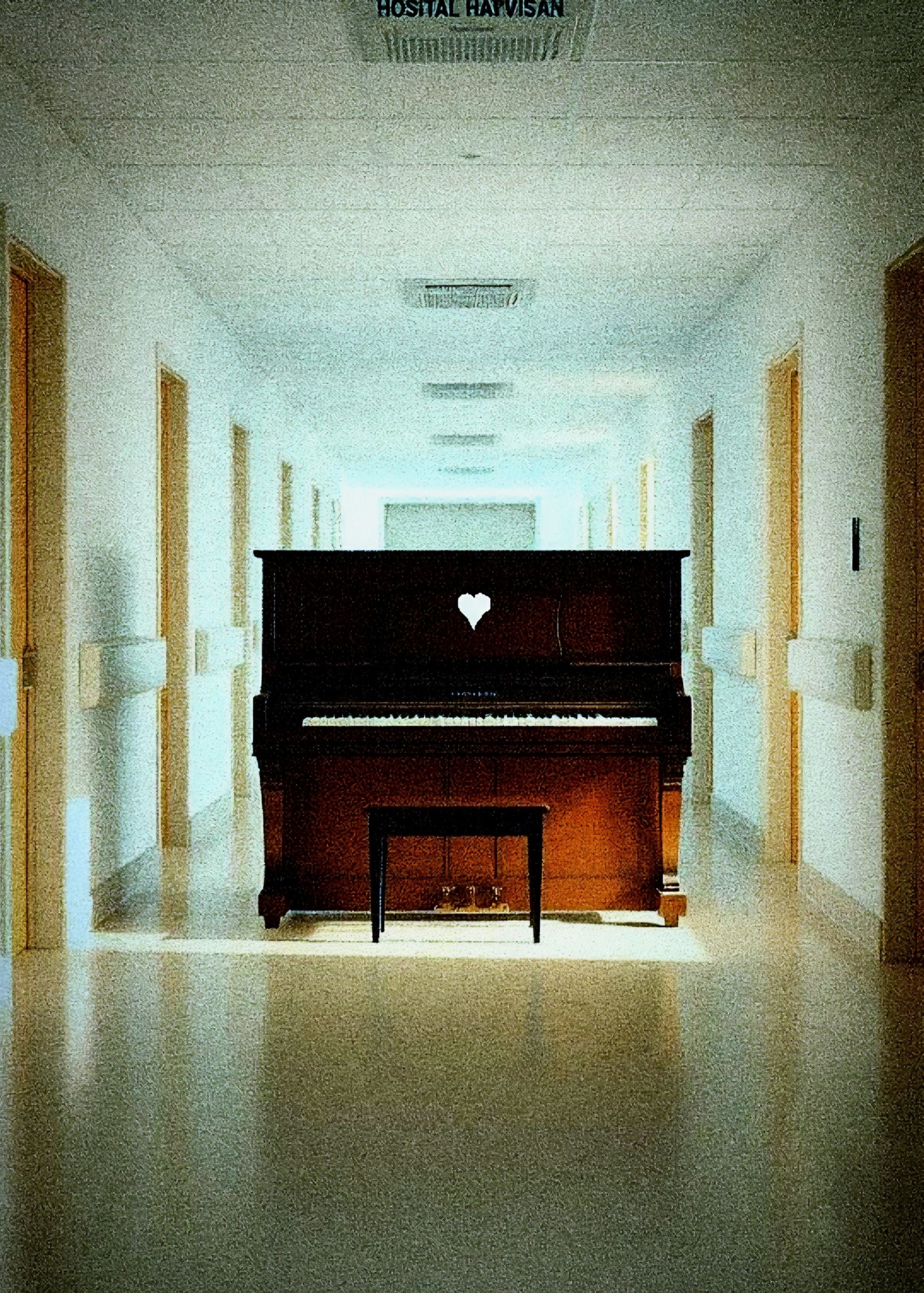 #HookImage: vintage piano inside a hospital_ realistic style, high detail
