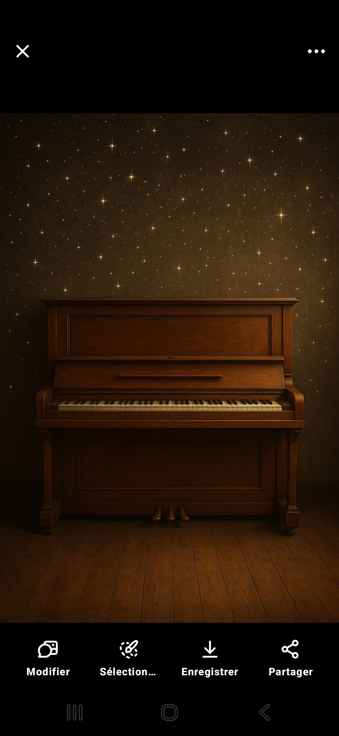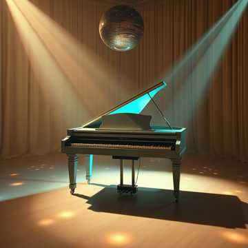#HookImage: vintage piano on a dance floor_under a mirror ball_stars_realistic style, high detail