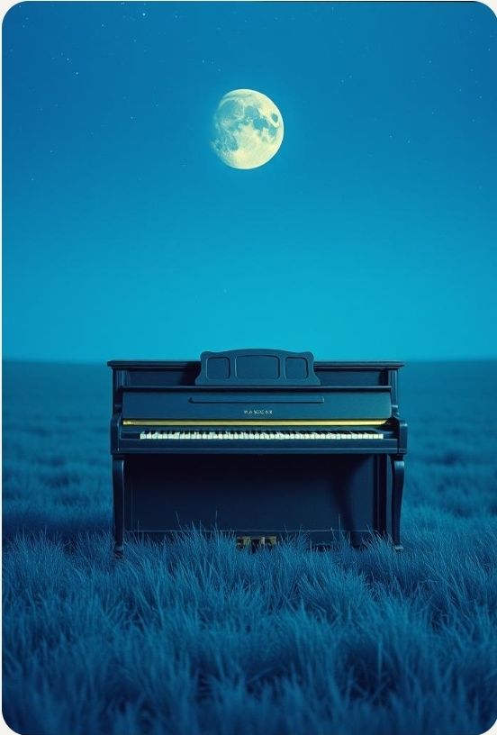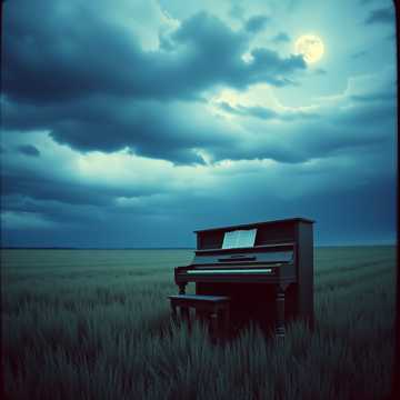 #HookImage: vintage piano standing alone in a wide open field under a starry night sky, soft moonlight, mystical and serene, realistic style, high detail