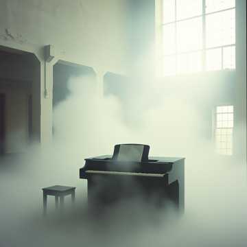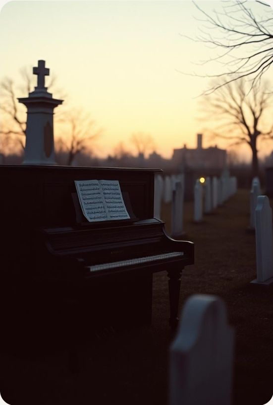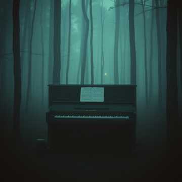 #HookImage: vintage and broken piano under a strom and lighting crash, mystical and serene, realistic style, high detail
