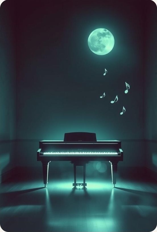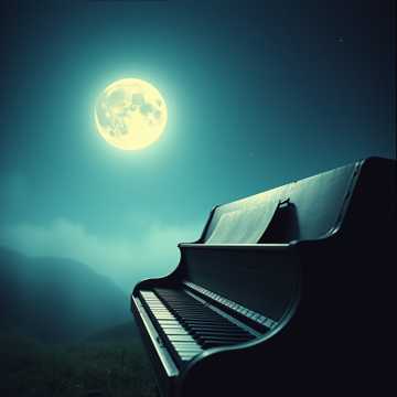 #HookImage: vintage and broken piano under a bright moonlight, mystical and serene, realistic style, high detail