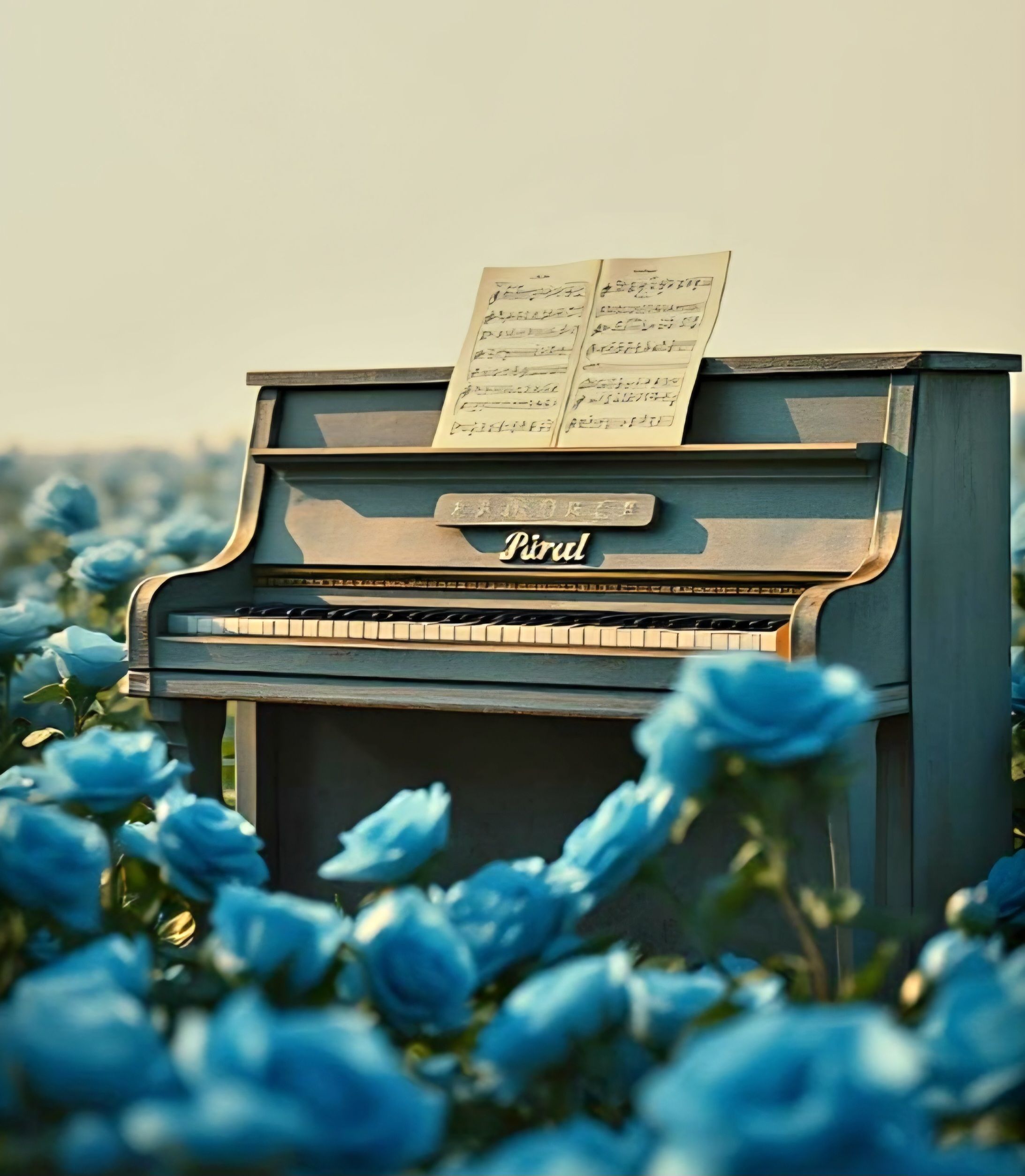 #HookImage: old vintage piano in a beautiful field of rose_realistic style