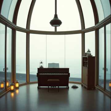 #HookImage: vintage piano inside a lighthouse_realistic style, high detail