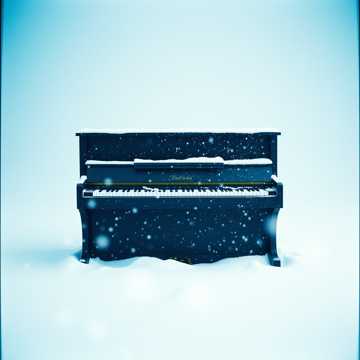 #HookImage: vintage piano standing in the middle of the snow, realistic style, high detail