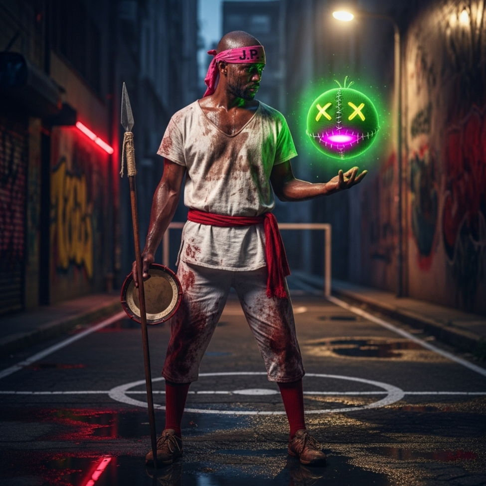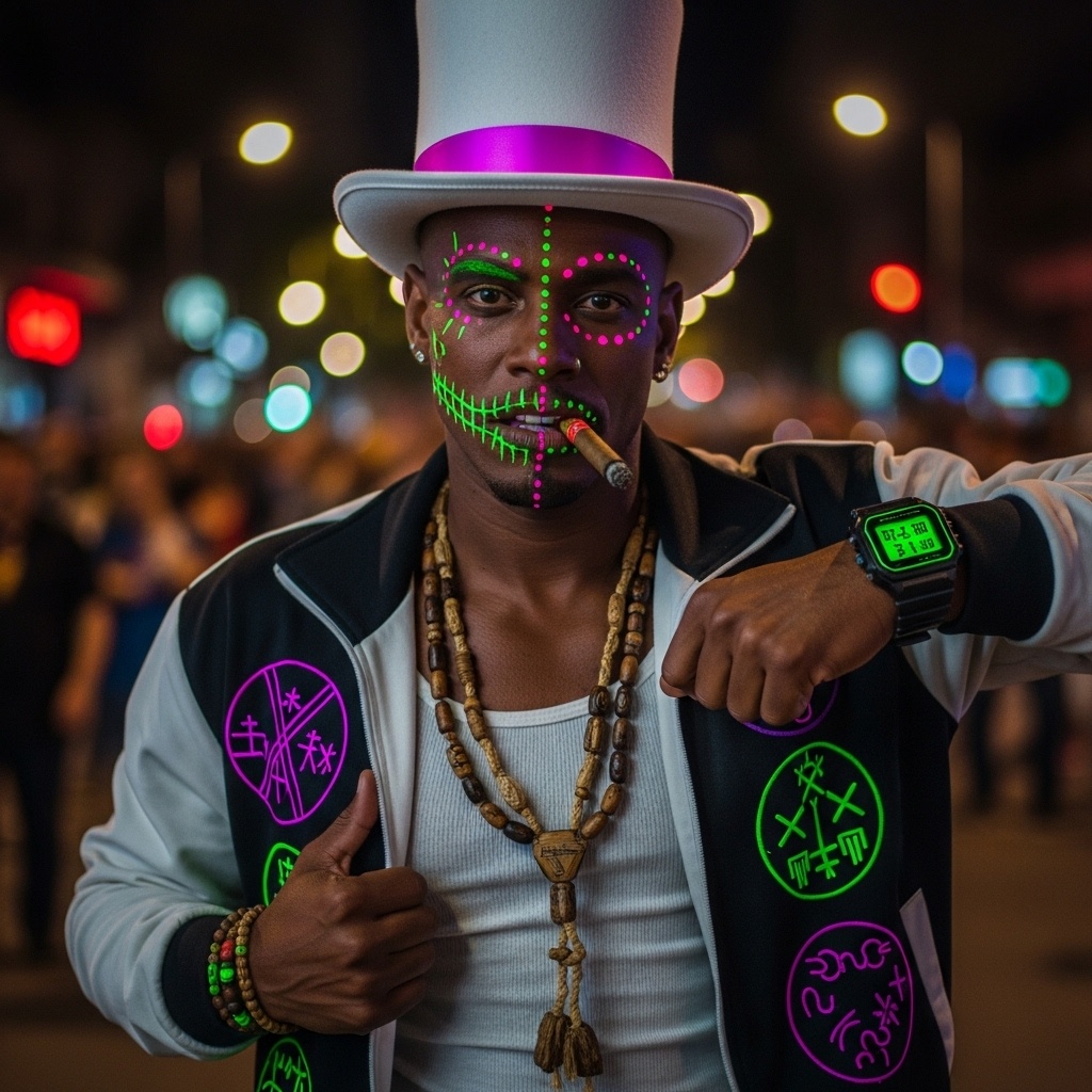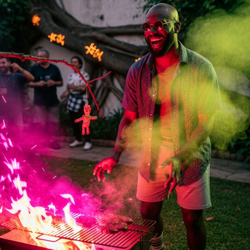 [Music: Driven by the raw, earthy heartbeat of a Djembe and Shekere, A gritty, blues-inflected Charango riff provides the soul, Over this, a hypnotic Berimbau loop and the joyful squeal of a Cuíca weave a psychedelic, sacred texture, The groove is organic, unstoppable, and deeply human, ]