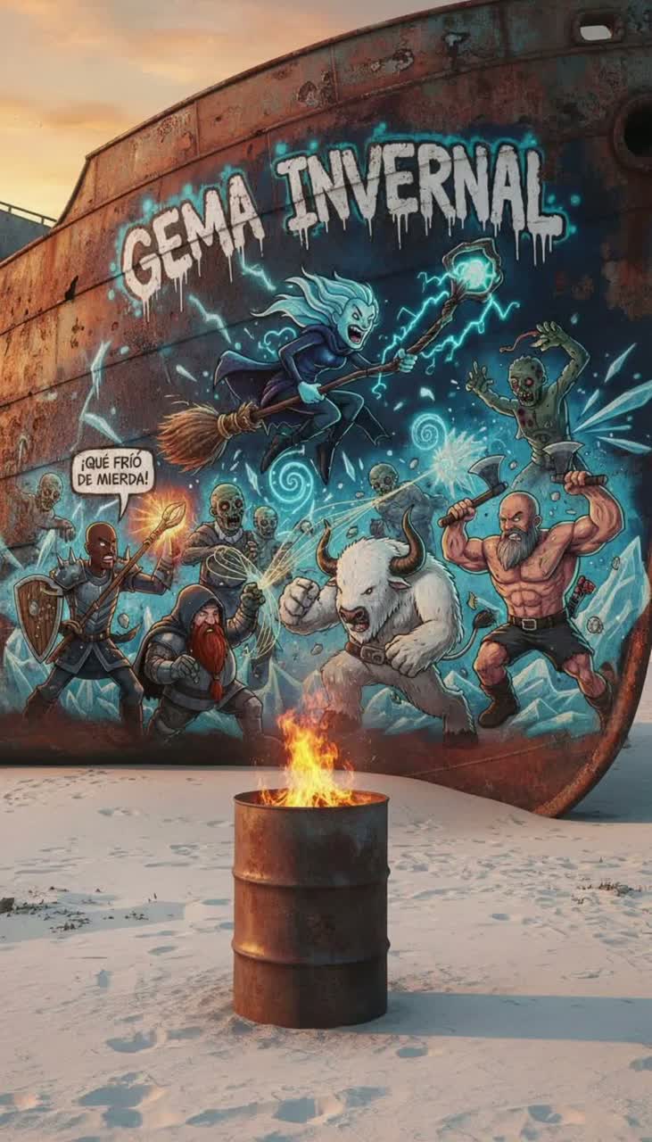 [A Stoner Funk Orchestra playing a short, driving track, Built around a ridiculously catchy, hypnotic, fuzzed-out stoner rock guitar riff, The rhythm is a raw, clanking groove played on a prehistoric junkyard percussion kit, punctuated by sullen, soulful brass sections, AR's vocals are a charismatic, shamanic lament in Spanish Rioplatense, The track feels like a funky, cautionary fable; an unsettlingly danceable sermon about a man lovingly consumed by his own creation, A lost Adventure Time musical number about geological horror, ]