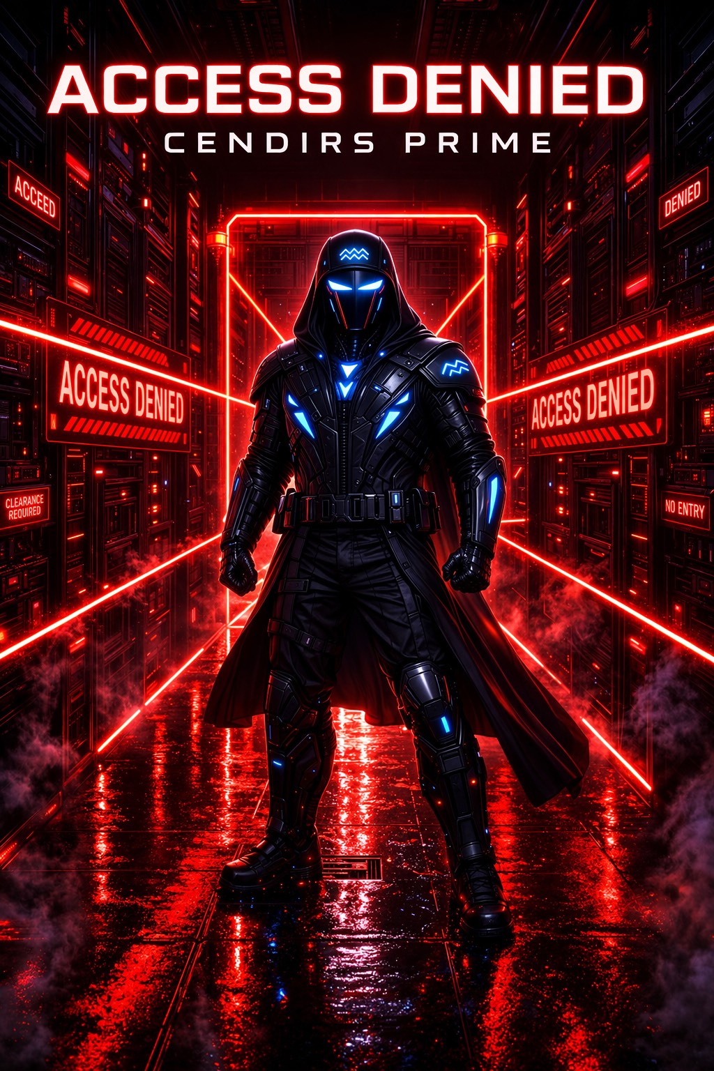 Male vocals, cinematic cyber rock with industrial metal force, sharp distorted guitars, pulsing synth bass, glitch textures, pounding drums, and a cold futuristic atmosphere, The song should feel forceful, locked-in, and emotionally final — like a digital gate slamming shut forever, Strong tension in the verses, huge commanding chorus, and a powerful breakdown with clipped denial phrases, Make it sound like Cendirs Prime taking full control, sealing the breach, and cutting someone off completely, Polished, modern, melodic, aggressive, and anthemic, with the same sharp energy as Codebreaker, Signal Overload, Mute the Signal, and Firewall Heart