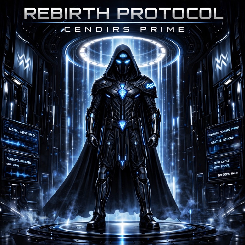 A futuristic cyber metal / pop metal anthem performed by Cendirs Prime with male lead vocals, Confident, commanding, controlled delivery with clean singing, grit, and emotional force, no harsh screaming unless naturally implied in the breakdown, Heavy distorted guitars, punchy rock drums, cinematic synth layers, glitch textures, digital arpeggios, and polished electronic production, Dark cyberpunk atmosphere with a massive modern chorus, memorable hooks, and a powerful identity-driven vocal presence, The song feels rebellious, self-aware, and evolved — about breaking free from control, rewriting fate, and becoming stronger than the system that created you, High-energy, polished, epic, futuristic, and album-worthy
