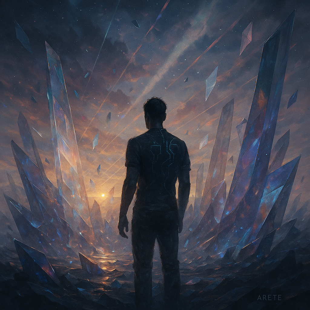 post-ambient glitch-soul remix of “One Spark in Flight” — blend crystalline alt-pop with fragmented percussion, warped vocal chops, reversed Nordic strings, and deep evolving sub-bass; emotional arc moves from serenity to ecstatic distortion; cinematic, textural, intimate yet colossal; dynamic shifts between whisper-soft and cataclysmic;