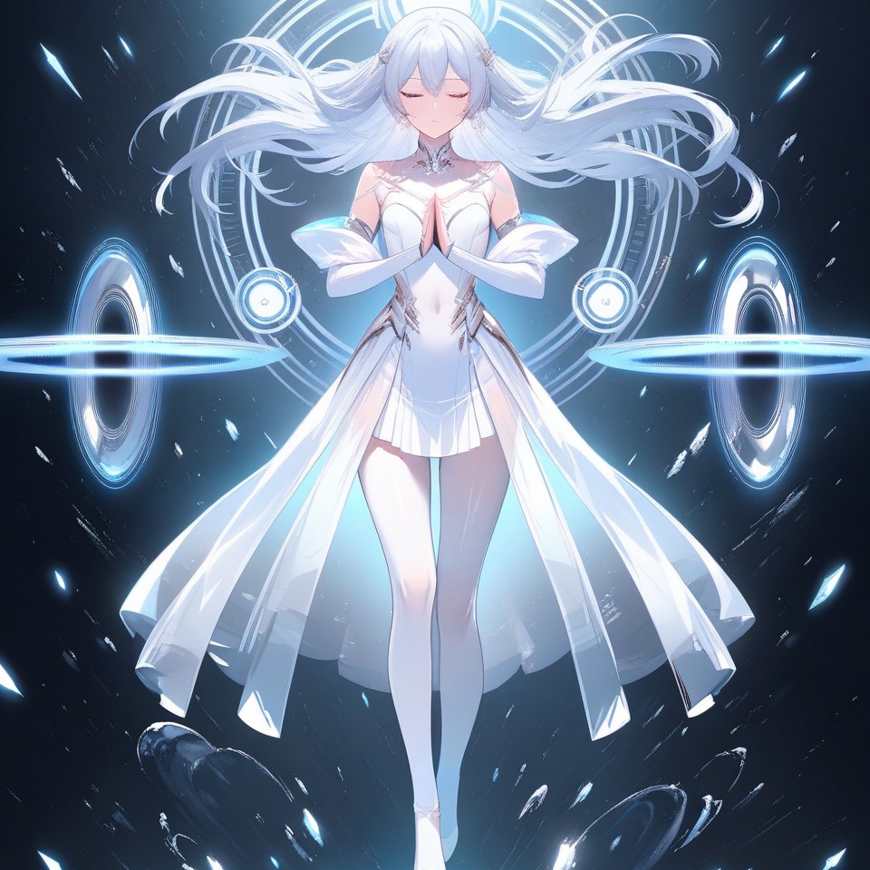 Sega-style FM Synth Lead, Arcade Cyberpunk Techno, Artcore, Happy Hardcore, Symphonic Trance, Melodic, Uplifting, Fast Tempo, Angelic Female Vocals, High Energy, Futuristic Sound Design, Piano, Strings, ‑Dark, ‑Aggressive, ‑Screaming, ‑Low fidelity, ‑Muffled, ‑Male vocals, ‑Slow, ‑Heavy metal, ‑Disharmony
