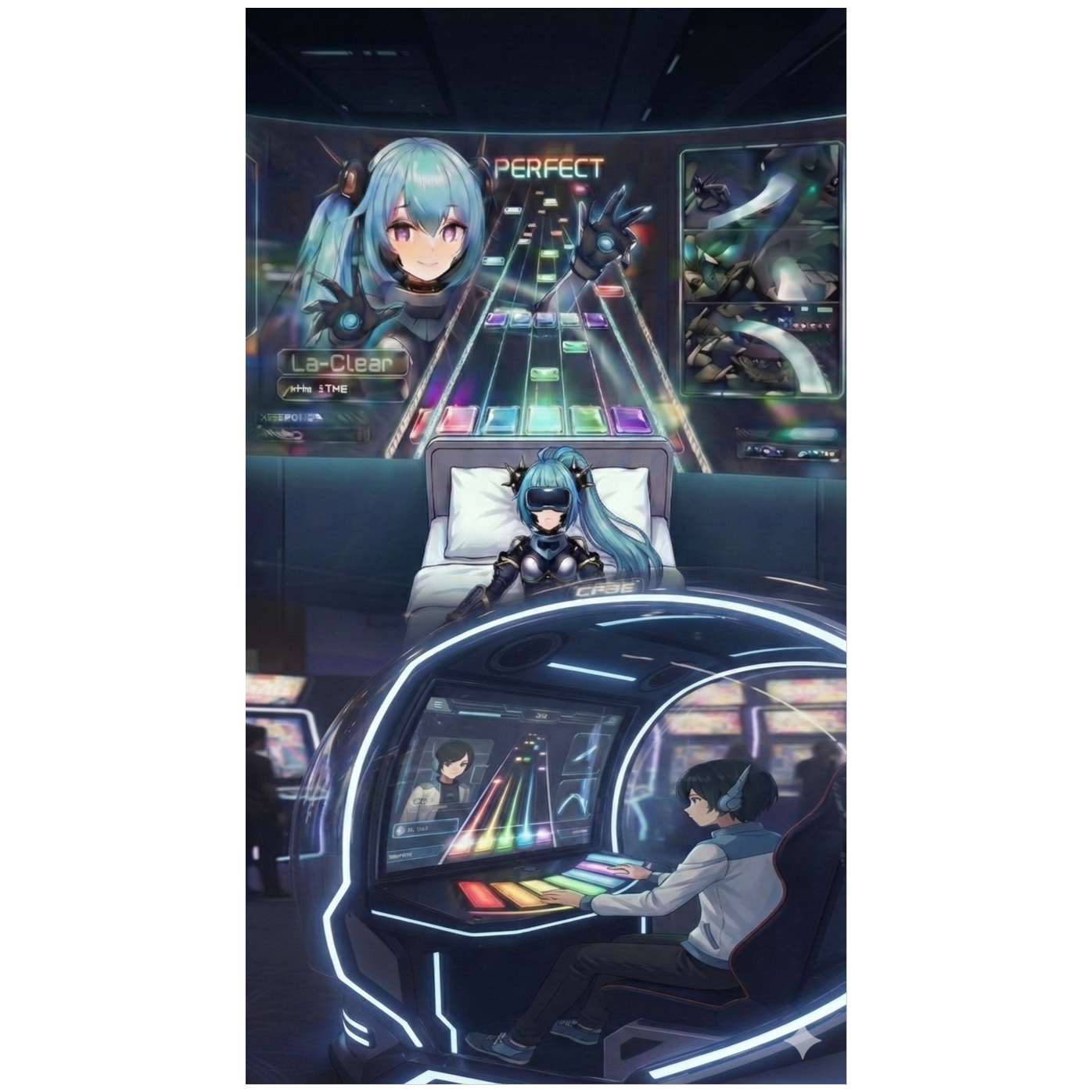 Speedcore, Hardcore, Eurobeat, J-Core, 175BPM, High energy, Aggressive synths, Arcade, Cyberpunk, Vocal samples