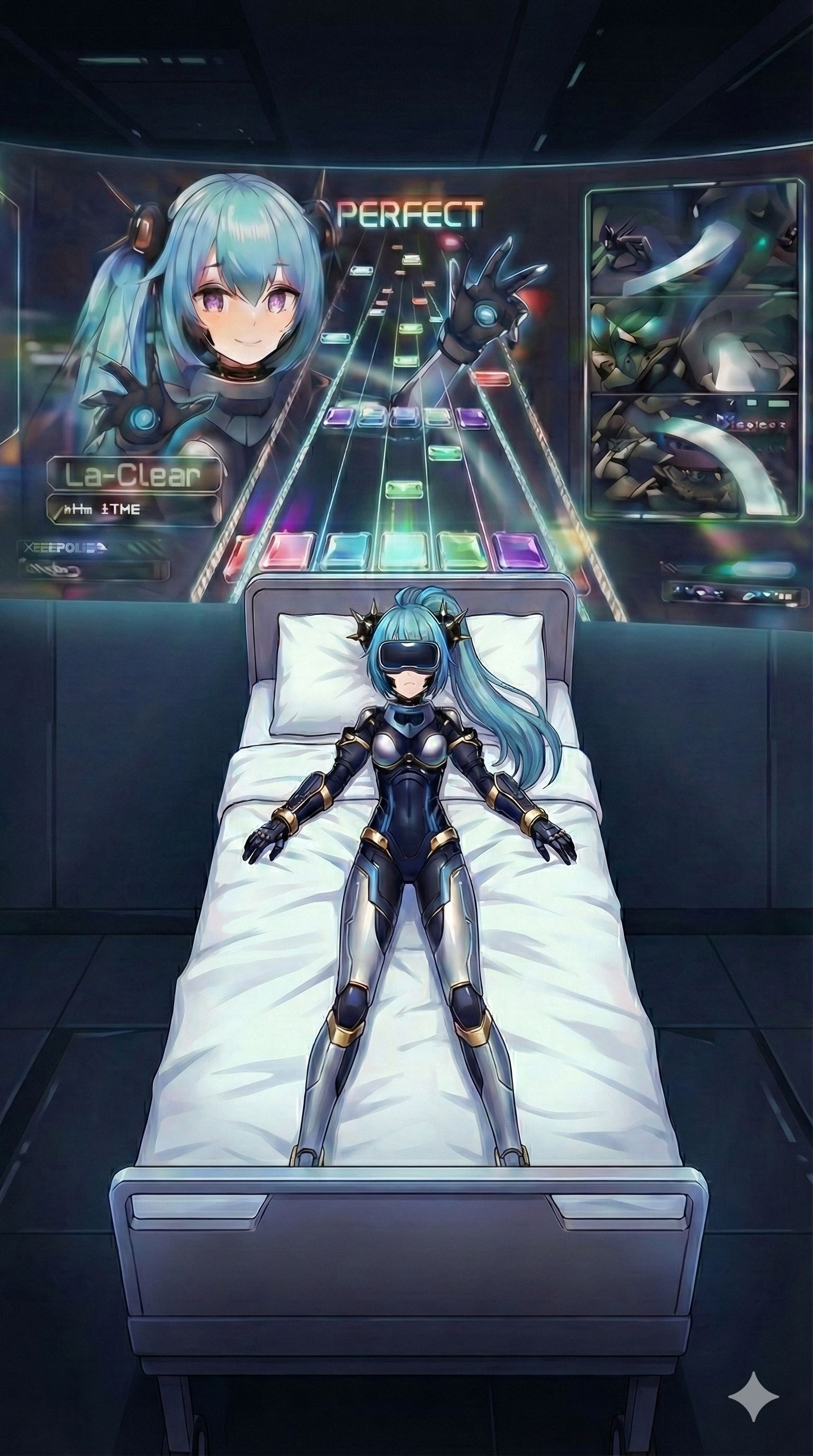 Instrumental only, High-speed cyber symphonic rock, rhythm game boss track, 200 BPM, Epic, purifying, and highly emotional, Band: Fast driving double bass drums, complex basslines, and tight rhythm guitar form a speedy foundation, Lead Instruments: Rapid emotional grand piano, prominent sparkling cyber synthesizers, and elegant orchestral strings (violin) taking turns to play the extremely catchy, uplifting main melody, Progression: Highly dynamic, technical, but purely melodic and heroic, Tense build-ups leading to massive, radiant drops, Texture: Pristine modern electronic rock production, hyper-clear and sparkling, Strictly NO vocals, NO voice, NO singing, NO choirs, No dark gothic, no muddy mix