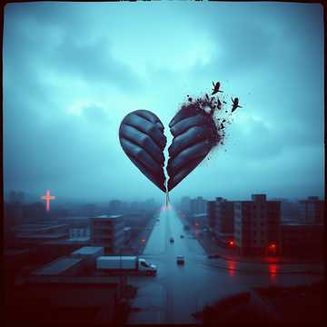 Dark, cinematic, emotionally charged atmosphere