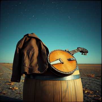 Two acoustic guitars (one strumming steady, one fingerpicking softly), Guitar body slaps + boot stomps as percussion (no drums), Harmonica leading between vocal lines, Outdoor ambience (crickets, faint night air, late-night vibe), Vocals raw, close-mic, imperfect — like recorded on a cell phone, Minimal reverb, no polish, no heavy production, (keep natural & human), Runtime: 3:30–4:00 (let it breathe, harmonica fills + pauses), Intro: faint campfire/laughter, then spoken line: “Hey boys… looky here… got somethin’ for ya, ”