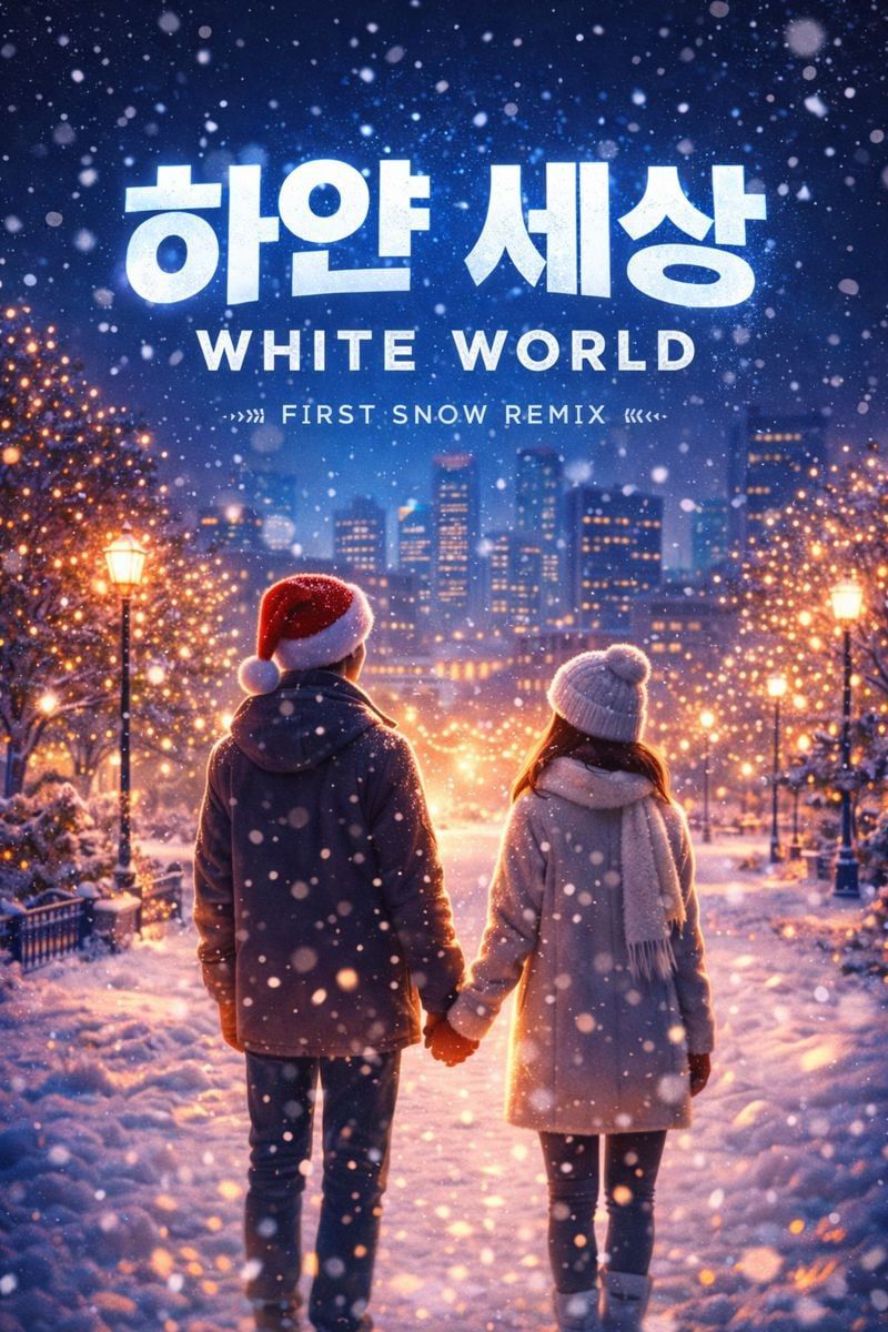 Christmas hip hop boom bap remix, warm carol pop vibe, 90 BPM, lo-fi piano, soft vinyl crackle, classic hip hop drums, bell sounds, winter atmosphere, Korean rap with melodic chorus, nostalgic, cozy, first snow feeling, city night, emotional, sing-along chorus