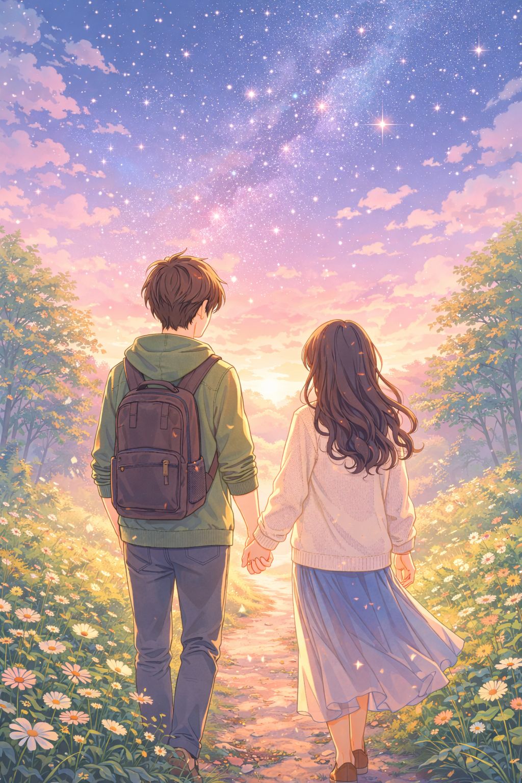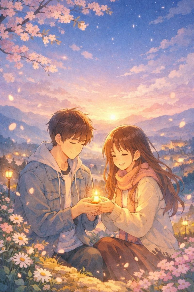 lyrics theme: shared sky, friendship and quiet love, walking together, warmth, small moments, unchanging bond, calm happiness, nostalgic, hopeful, and peaceful