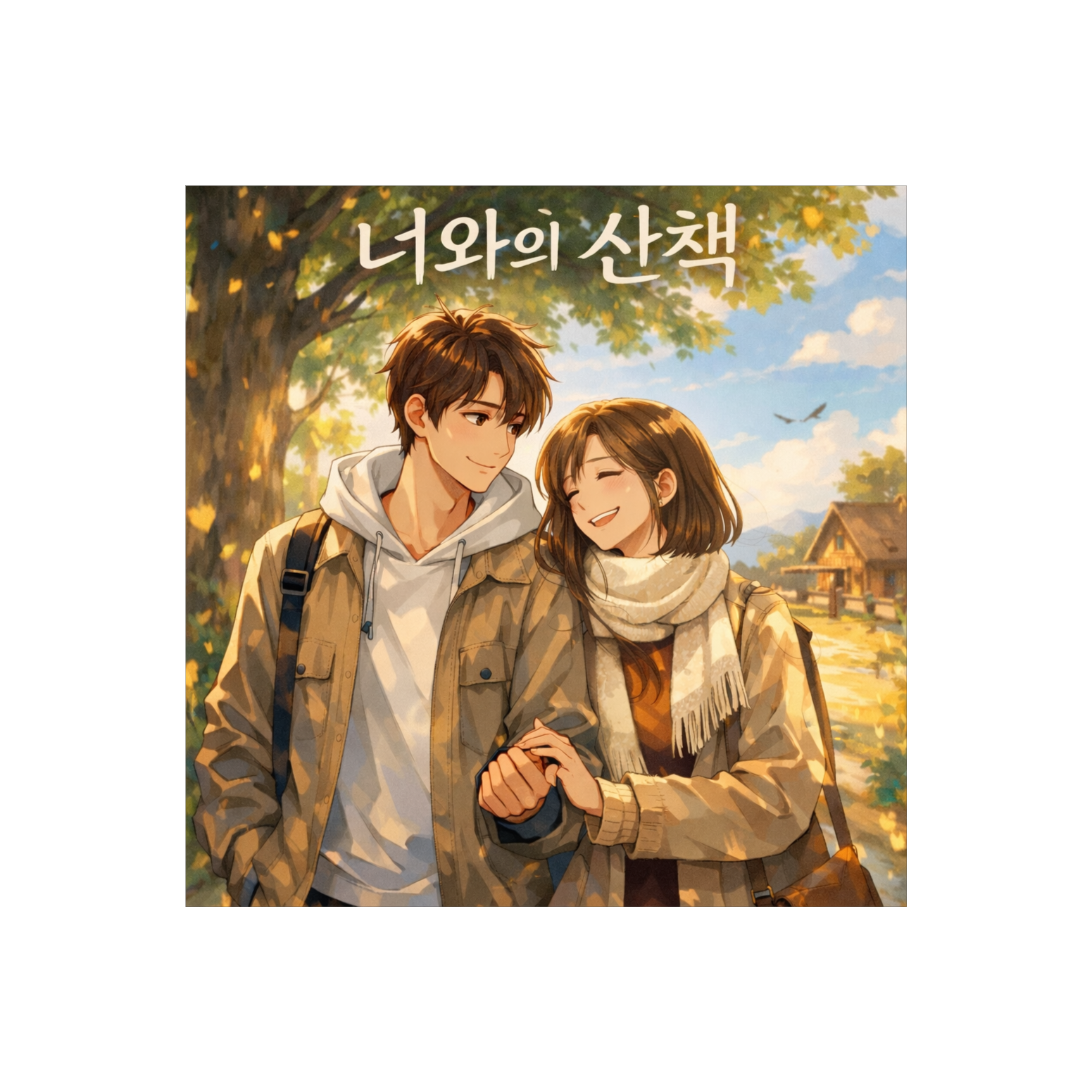 Warm cinematic indie-pop OST with acoustic guitar and soft piano, Gentle build-up arrangement that starts intimate and gradually expands with light drums and subtle strings, Male vocal, warm and emotional but not overly dramatic, The verses feel like storytelling memories, detailed and visual, Pre-chorus gently lifts with warmth, The chorus is catchy and repetitive, centered around the phrase “너와의 산책, ” designed to linger in the listener’s mind, Soft background harmonies in the final chorus for emotional lift, Natural ambience feeling — like sunlight, wind, and open air, Moderate tempo, nostalgic but hopeful mood, Studio quality, clean mix, cinematic depth