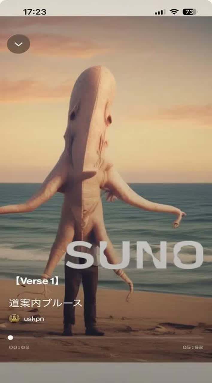Japanese jam band style inspired by “Razoku”, blending surf rock brightness, funky tightness, and reggae-style offbeat guitar, Instruments: clean electric guitar with slight wah/phaser, offbeat skank-style chords, melodic surf-style lead fills, groovy fingerstyle bass, warm live drums with tight hi-hats, Vibe: sunny, coastal, relaxed but rhythmically sharp, ocean-breeze swing, jam-oriented, Groove: reggae offbeat guitar on the “&” beat, funky syncopated bass, surf-rock melodic touches, Tempo: around 104 BPM, Guitar: clean Strat tone, palm-muted offbeats, occasional surf gliss and double-stop licks, Bass: round, deep, syncopated, playing between reggae space and funk movement, Drums: steady 4/4, rimshot backbeat, light ghost notes, slightly behind the beat, Mix: bright, open, airy, like a beach at sunset; maintain laid-back energy without pushing into rock climax, Overall feel: a chilled but danceable coastal jam, where surf-rock shimmer meets funky pocket and reggae offbeat rhythm