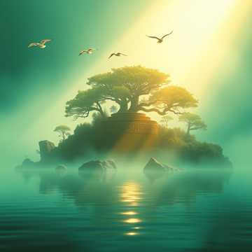 mystical nordic folk electronic, tribal drums, female choir, violin theme in magical tone, cinematic discovery atmosphere, ancient island mystery