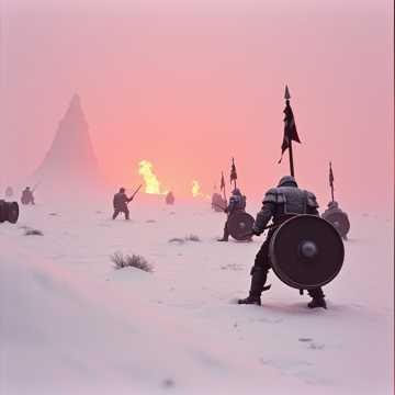 epic viking battle folk metal, massive war drums, horns, steel impacts, cannon blasts, aggressive male choir, cinematic war soundtrack energy