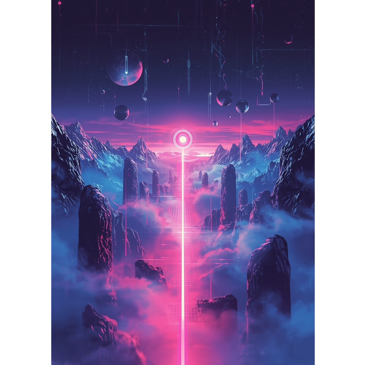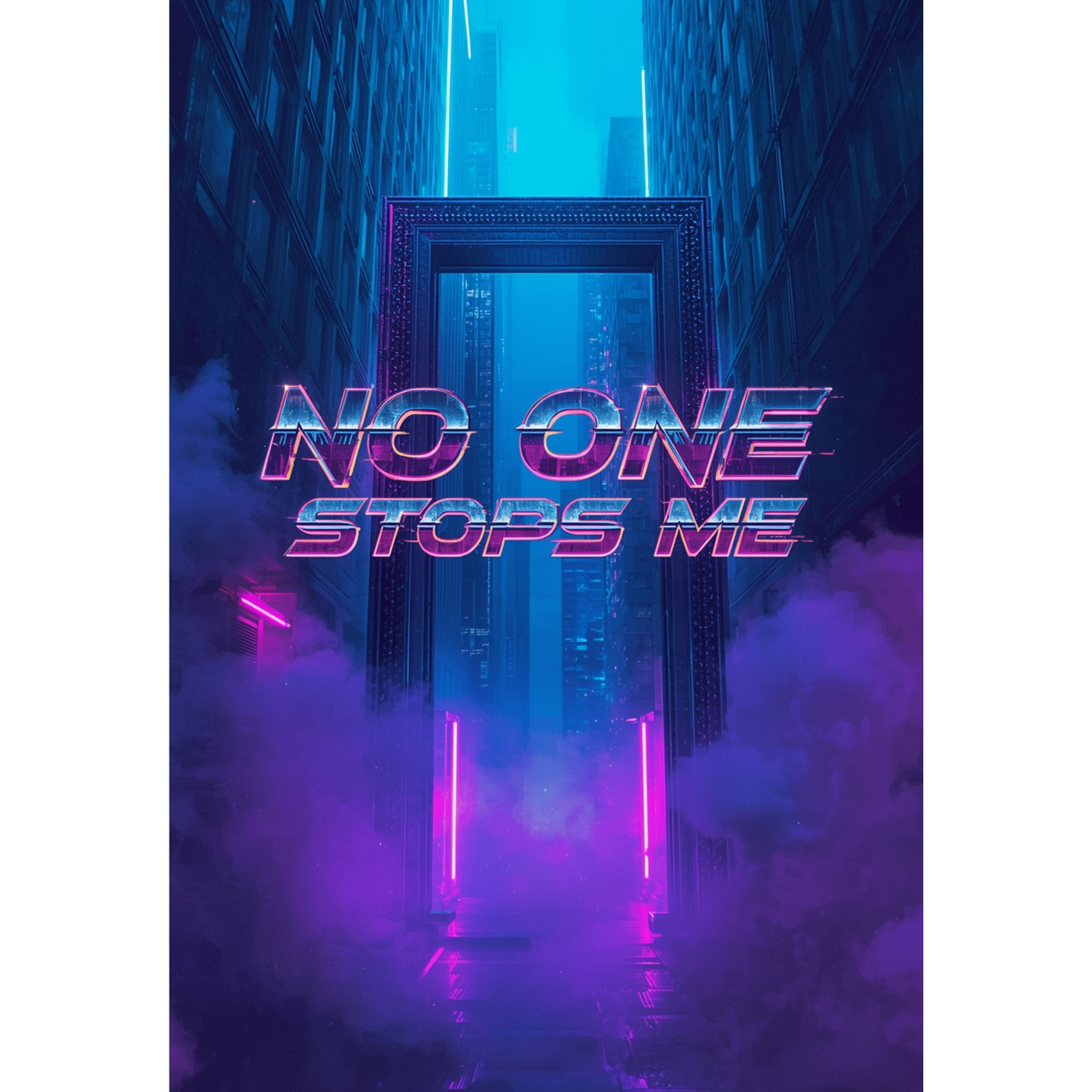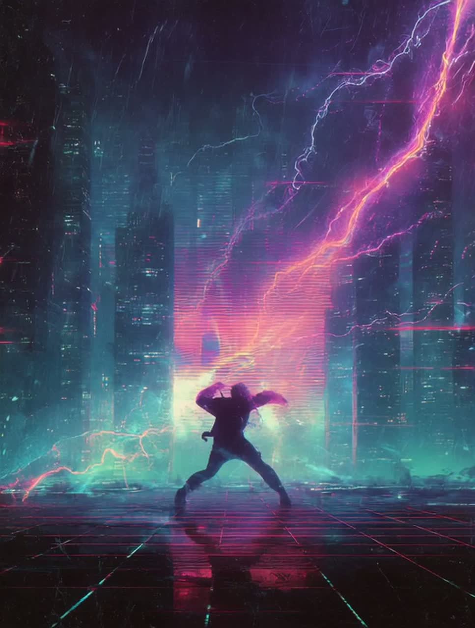 A fusion of power metal’s soaring guitars, double bass drumming, and operatic leads with retrowave synth arpeggios and industrial metal’s mechanical percussive layers, Cinematic pads set an epic intro, charging to a driving chorus with layered synths accenting the metal riffing