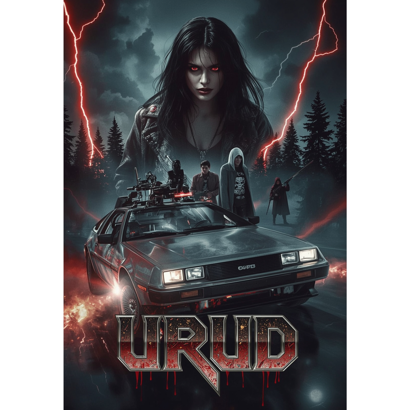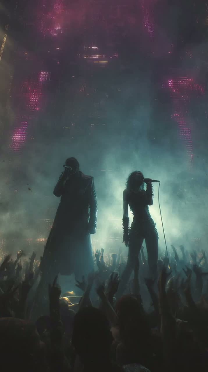 Epic cinematic metal with a strong retro synthwave vibe, intense dark electronic beats, industrial elements, and heavy guitars, Features anthemic and aggressive female vocals with both operatic and edgy rock tones, Mid-tempo with rising dynamics, punchy drums, and explosive breaks, A guitar solo with electro-metal madness, incorporating virtuosic, high-energy riffs, fast arpeggios, and heavy drops, The song's atmosphere is bold, empowering, and cinematic, ideal for a live concert where the crowd chants and sings along, The mood is futuristic, edgy, dark, and rebellious, with elements of glitchy sounds and cyberpunk undertones